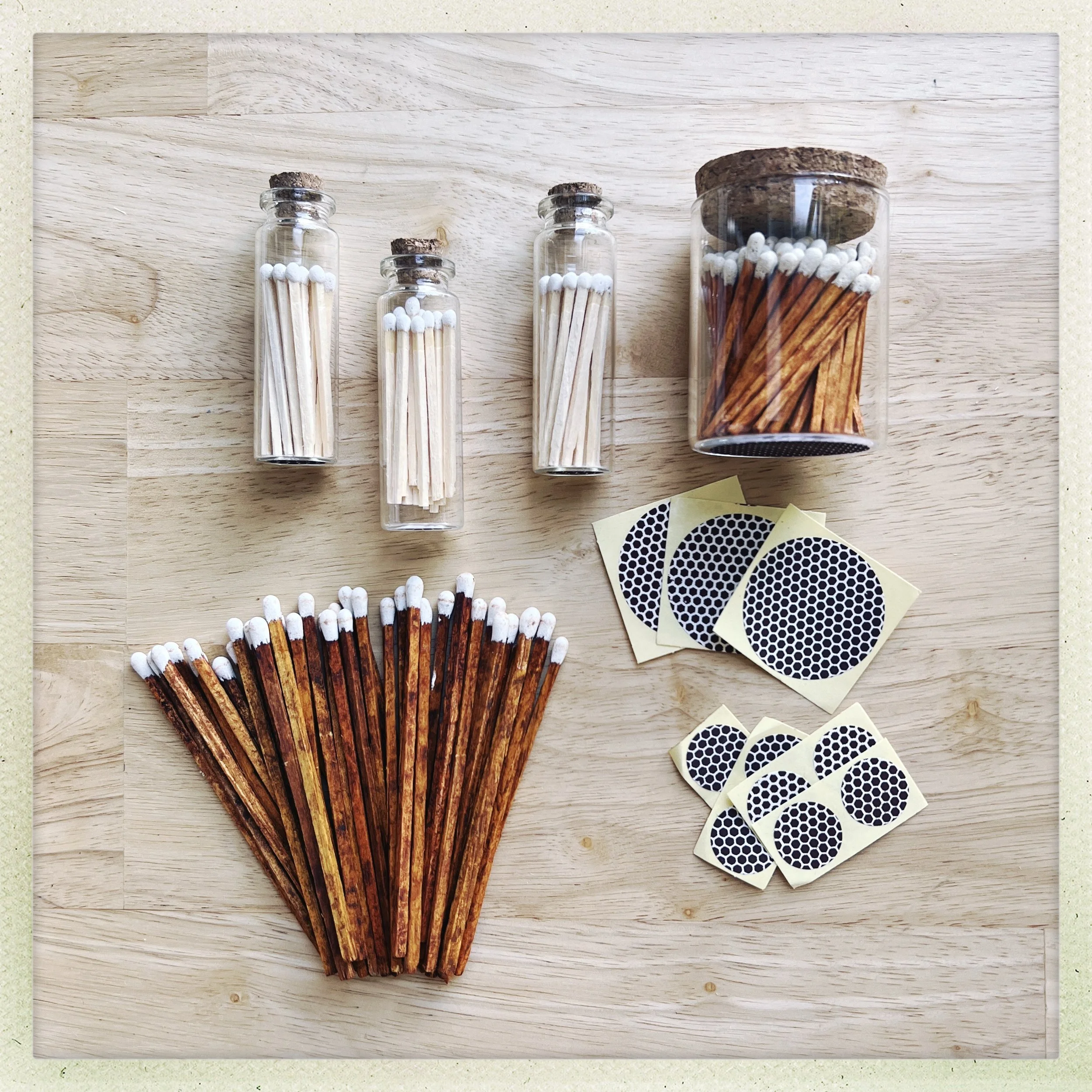 2" Classic White Tip Safety Matches | 3 Glass Bottles Each with Cork Top, Striker by Thankful Greetings https://amzn.to/46Zky1H